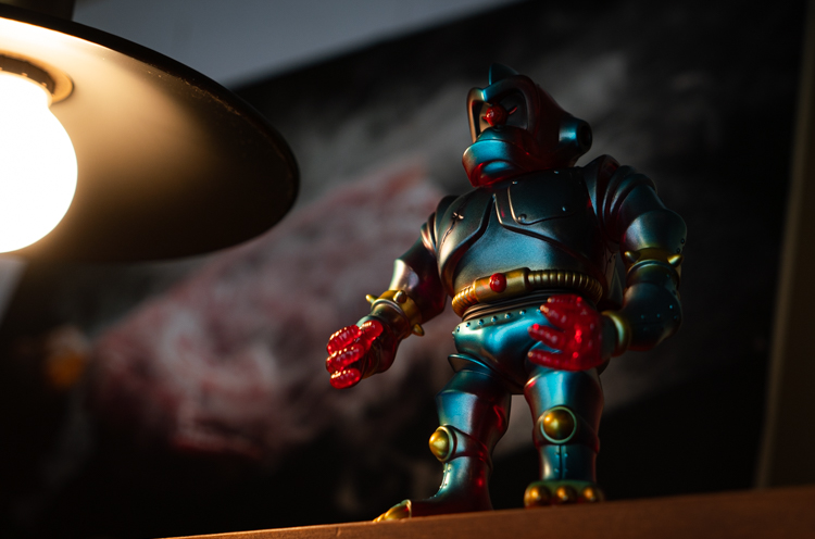 ブルーメタリックとクリアレッドを組み合わせがどこかノスタルジックなソフビの魅力を感じさせるカラーリングに仕上がっております。