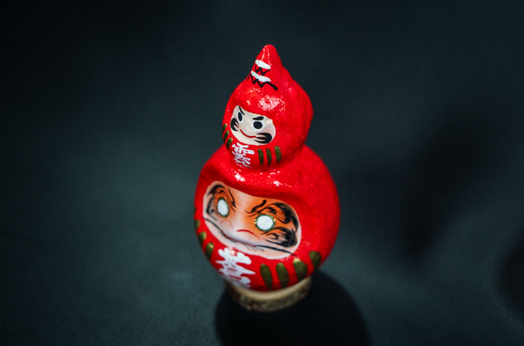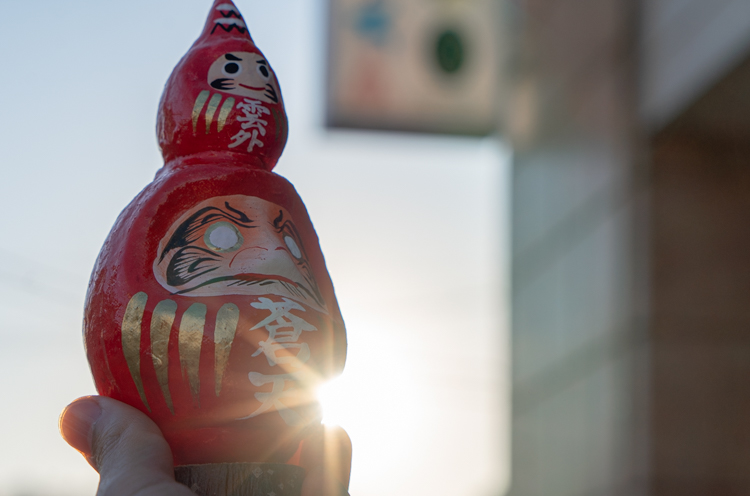 高崎だるま。禅宗の開祖である、達磨大師の坐禅の姿がだるまです。願い事を叶えるため、その思いを自らの中で高めるためのものです。