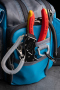 マガジン型コンパートメントと本体の隙間をポケットに有効活用。大きめのプライヤーやハサミ、フィッシュグリップなどすぐに取り出したいアイテムを入れるのに大変便利なポケット。リーシュコードなどは前面のDリングを使うことで脱落防止もできます。