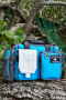 鮮やかな青はビーガンレザーの賜物。前面ポケットのフラップはアイスクリームの白、赤いスライダーはさくらんぼをイメージ。そして内部は中身が見やすい明るいメロンソーダグリーンを採用。細部までこだわったデザインとなっております。