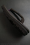 天板と鼻緒には、赤みを帯びた黒鳶(くろとび)色の上質な牛革を使用。履き込むほどに足に馴染み、革ならではのしなやかさと風合いが深まります。雪駄にもかかわらず柔らかく足を包み込むような優しい履き心地を実現。
