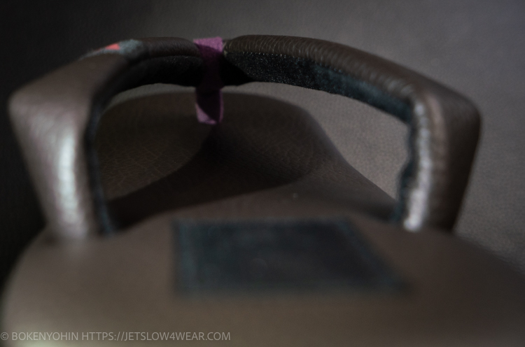 つま先の先つぼ部分には、上品な紫色のハイミロン素材を採用。全体の落ち着いた印象を損なうことなく、絶妙な彩りが個性を際立たせます。