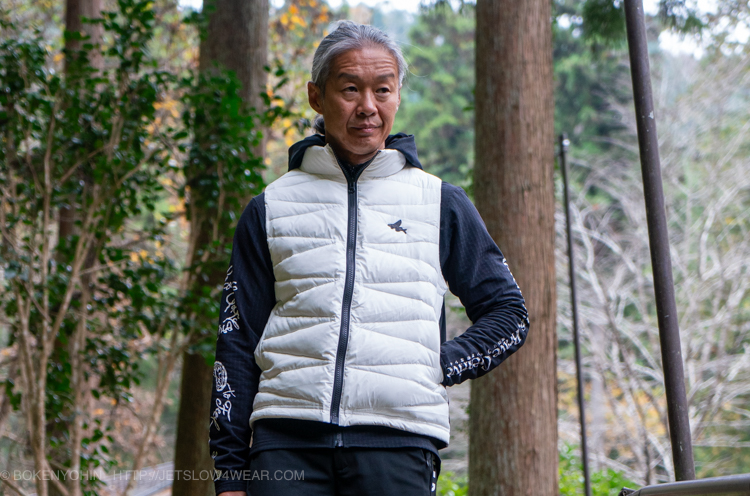 薄手ながらも暖かさをしっかり保つ高品質なダウンを使用。寒い季節でも快適な保温性と、機動性を確保。