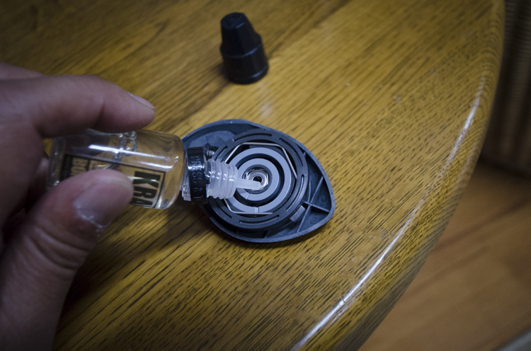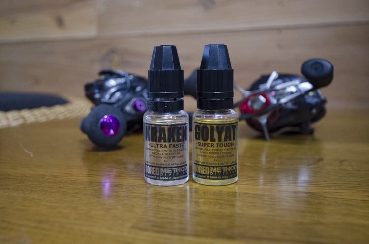 「長期使用でリールのオイル切れが起こらなかった添加オイル。クラーケンで回転を良くしながら、ゴリアテも添加することでベアリングが悲鳴をあげることがなかった。オイル切れを起こしたリールは、ベアリングが鳴き、スプール回転が落ち、キャストの精度が著しく悪くなってしまうからね」