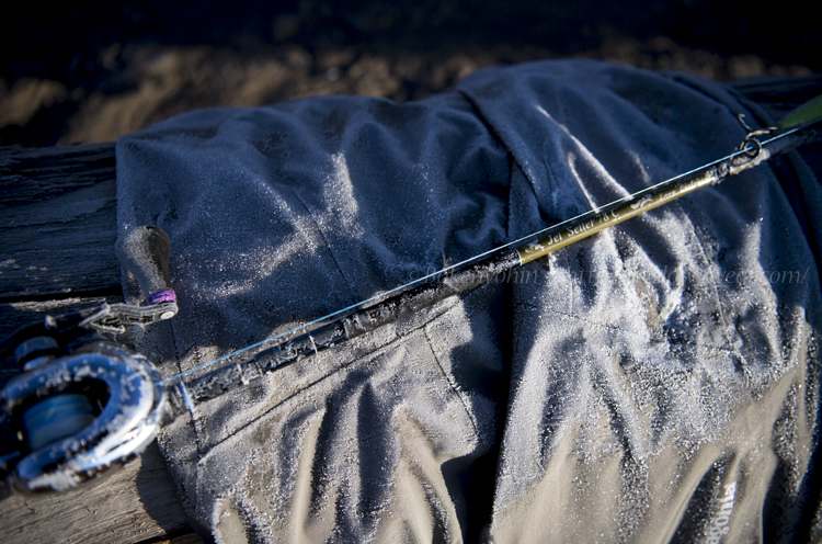 「青い空に一直線に飛んでいくルアー。ロンググリップを脇にはさみ。確かな手応えのあと、もだえるように跳ねる白い飛沫。緊張感をもって応戦する、そして、ぐいぐいと引き寄せる黄緑のロッドカーブ。」