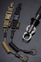 Boga Grip(ボガグリップ)、オーシャングリップなど、各種フィッシュグリップなどのリーシュコードに最適。重量のあるタイプのフィッシュグリップでも安心してご使用いただけるヘビーデューティーな伸縮性バンジーコードです。軍で兵士がヘリや車両から身をのり出す際に命綱として使用するセフティーランヤードを元にデザイン。ナスカン側をDリングやベルトループなどに接続してご使用ください。ウォレットやキーなどにも。