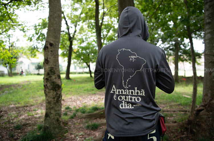 今回のモデルは前面の襟元にワンポイント、そしてバックプリントに南米大陸のみとできるだけシンプルなデザインにこだわりました。
